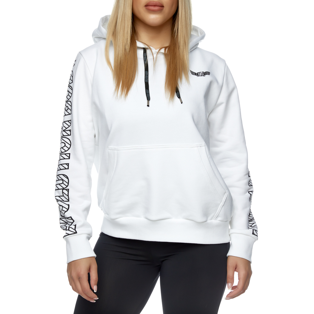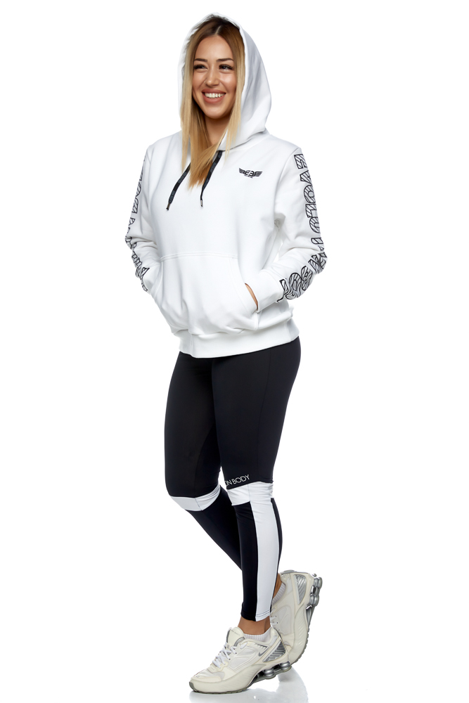 Λευκή φούτερ μπλούζα σε κομψό σχέδιο που φέρνει την sporty chic διάθεση στα καθημερινά σας outfits. Ιδιαίτερα άνετο και ζεστό ρούχο με ψηλό και φαρδύ γιακά που μπορείτε να συνδυάσετε και με πιο απογευματινά looks.