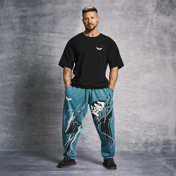 Φαρδιά φόρμα σε πετρόλ χρώμα. Το σχέδιο ξεχωρίζει για τα εντυπωσιακά grunge all-over τυπώματα και τον μοναδικό χρωματικό συνδυασμό του. Μπορεί να συνδυαστεί εύκολα με όλα τα καθημερινά σας look ή τα outfit γυμναστηρίου. Συνδυάστε την με μπλούζες ή ζακέτες Evolution Body και τα αγαπημένα σας sneakers και δημιουργήστε ένα sporty casual στιλ που θα ξεχωρίσει.