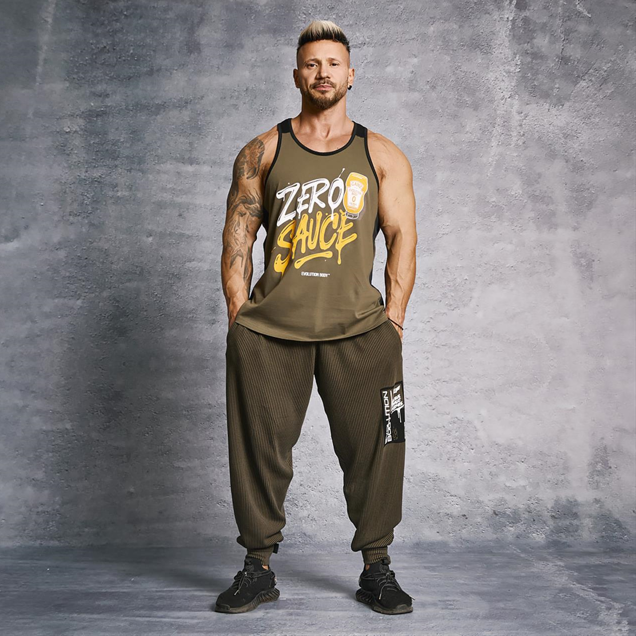 Φαρδιά φόρμα (oldschool) σε χακί-μαύρο χρώμα. Το σχέδιο ξεχωρίζει για τα εντυπωσιακό ριγέ pattern του και τον μοναδικό χρωματικό συνδυασμό του. Μπορεί να συνδυαστεί εύκολα με όλα τα καθημερινά σας look ή τα outfit γυμναστηρίου. Συνδυάστε την με μπλούζες ή ζακέτες Evolution Body και τα αγαπημένα σας sneakers και δημιουργήστε ένα sporty casual στιλ που θα ξεχωρίσει.