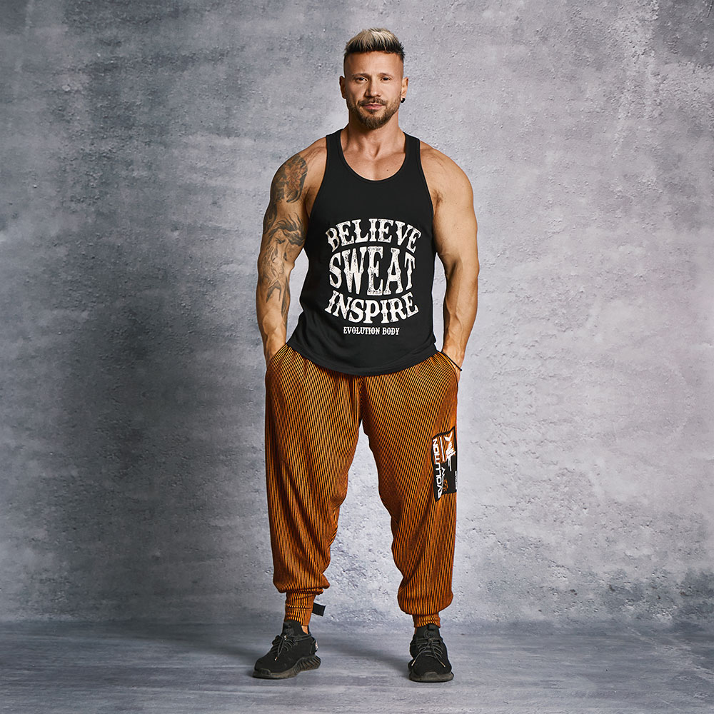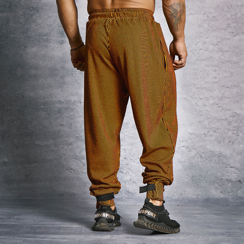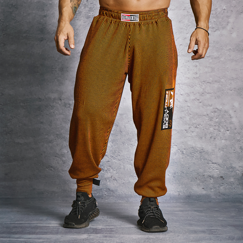 Φαρδιά φόρμα (oldschool) σε πορτοκαλί -μαύρο χρώμα. Το σχέδιο ξεχωρίζει για τα εντυπωσιακό ριγέ pattern του και τον μοναδικό χρωματικό συνδυασμό του. Μπορεί να συνδυαστεί εύκολα με όλα τα καθημερινά σας look ή τα outfit γυμναστηρίου. Συνδυάστε την με μπλούζες ή ζακέτες Evolution Body και τα αγαπημένα σας sneakers και δημιουργήστε ένα sporty casual στιλ που θα ξεχωρίσει.