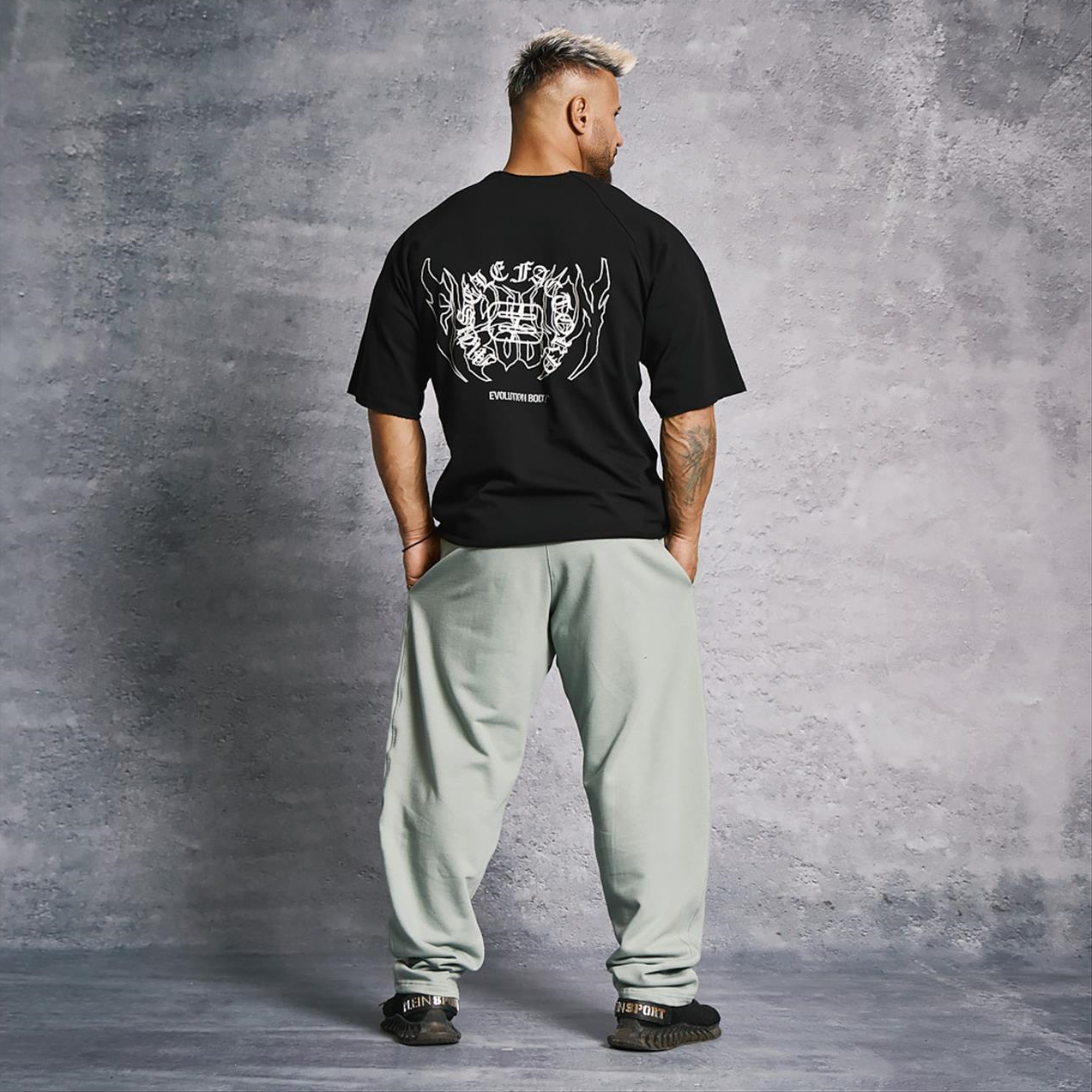 Κοντομάνικη μπλούζα σε φαρδιά γραμμή με motivational all-over πίσω τύπωμα για ανεβασμένους ρυθμούς στην προπόνηση και το γυμναστήριο. Ιδιαίτερα άνετο ρούχο για φυσική ελευθερία κινήσεων.