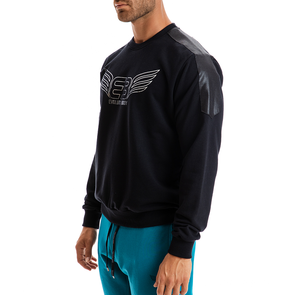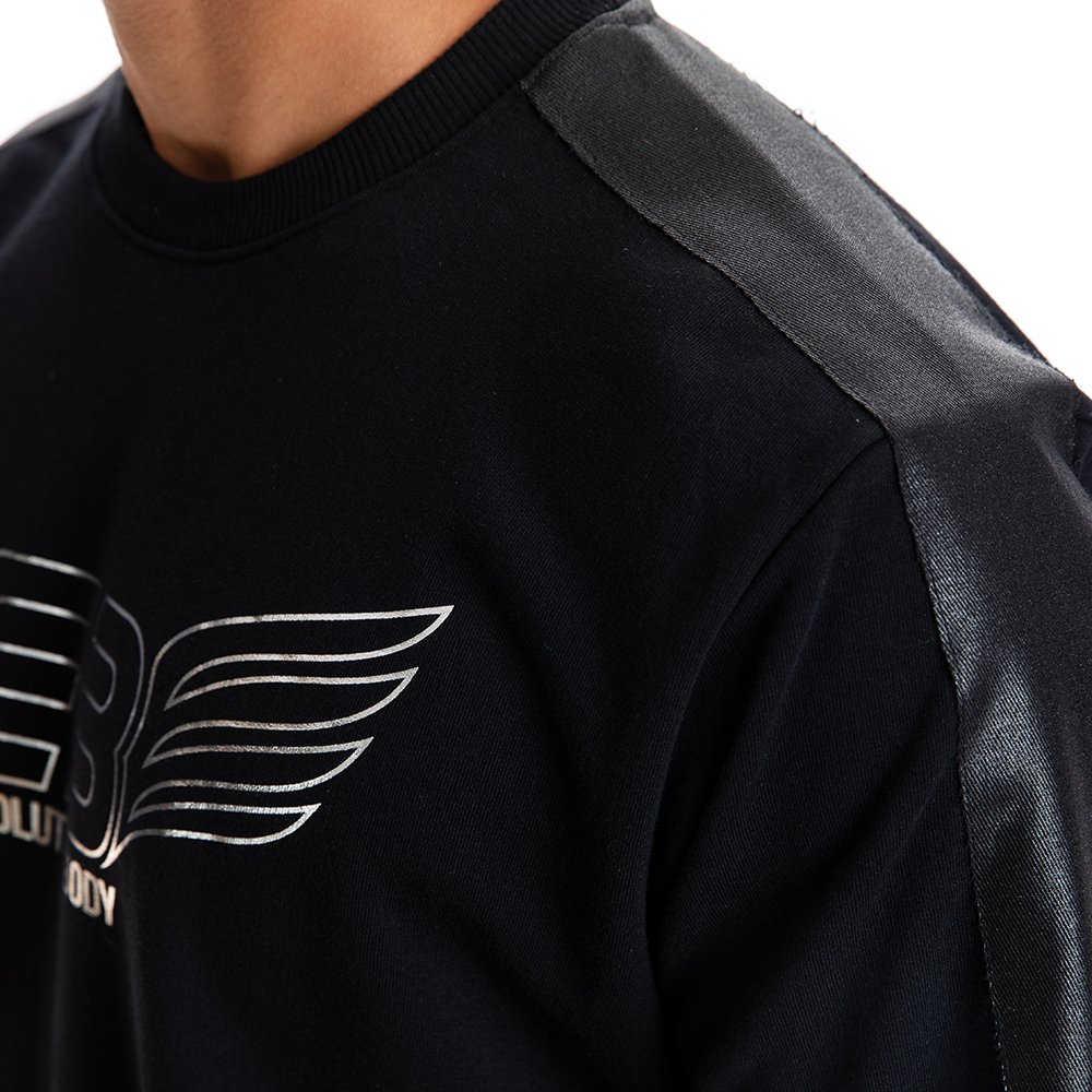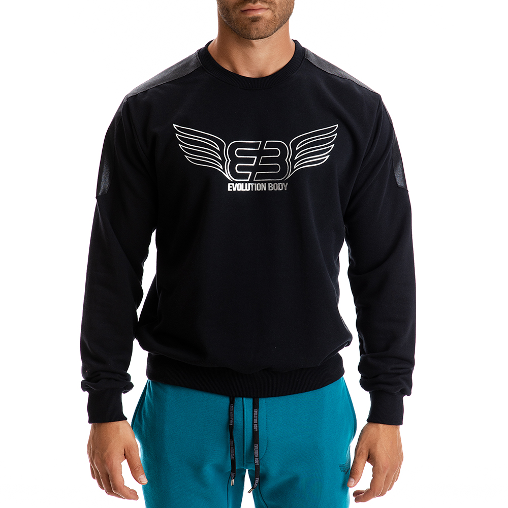 Φούτερ σε μαύρο χρώμα με ασημί στάμπα. Αθλητικό σχέδιο με street style χαρακτήρα που μπορεί να σας συνοδεύσει παντού όλες τις ώρες και να αναδείξει δυναμικά όλα τα καθημερινά outfits. Ευκολοφόρετο και ιδιαίτερα άνετο ρούχο που θα σας κρατήσει ζεστούς και γεμάτους ενέργεια τις κρύες μέρες του φθινοπώρου και του χειμώνα. Συνδυάστε το με  φόρμες Evolution Body ή τζιν και τα αγαπημένα σας sneakers και συντονιστείτε στο ρυθμό της πόλης.
