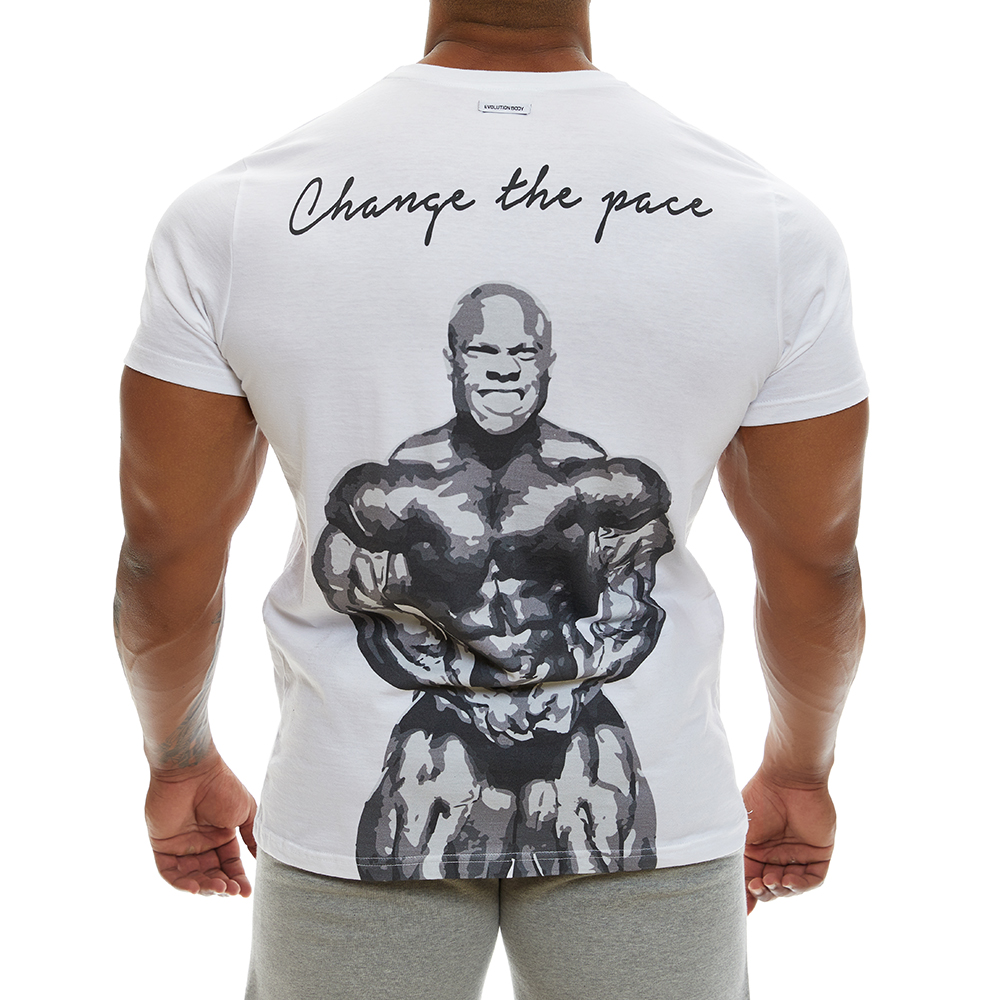 Αν θέλεις την απόλυτη άνεση του t-shirt, δώσε πόντους στο στιλ σου με τα μοναδικά σχέδια της Evolution Body. Άσπρο t-shirt με εντυπωσιακό τύπωμα στο μπροστινό και πίσω μέρος ιδανικό για το γυμναστήριο αλλα και για ιδιαίτερες σπορ εμφανίσεις.