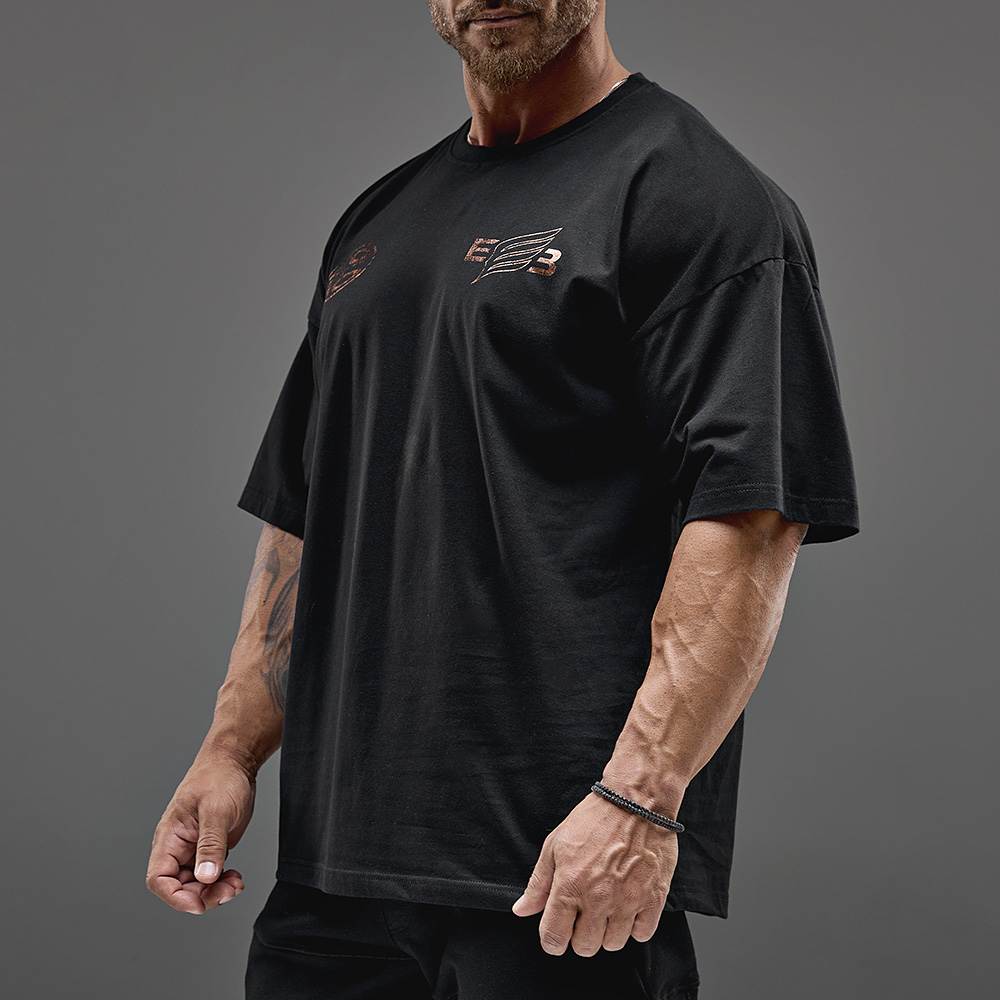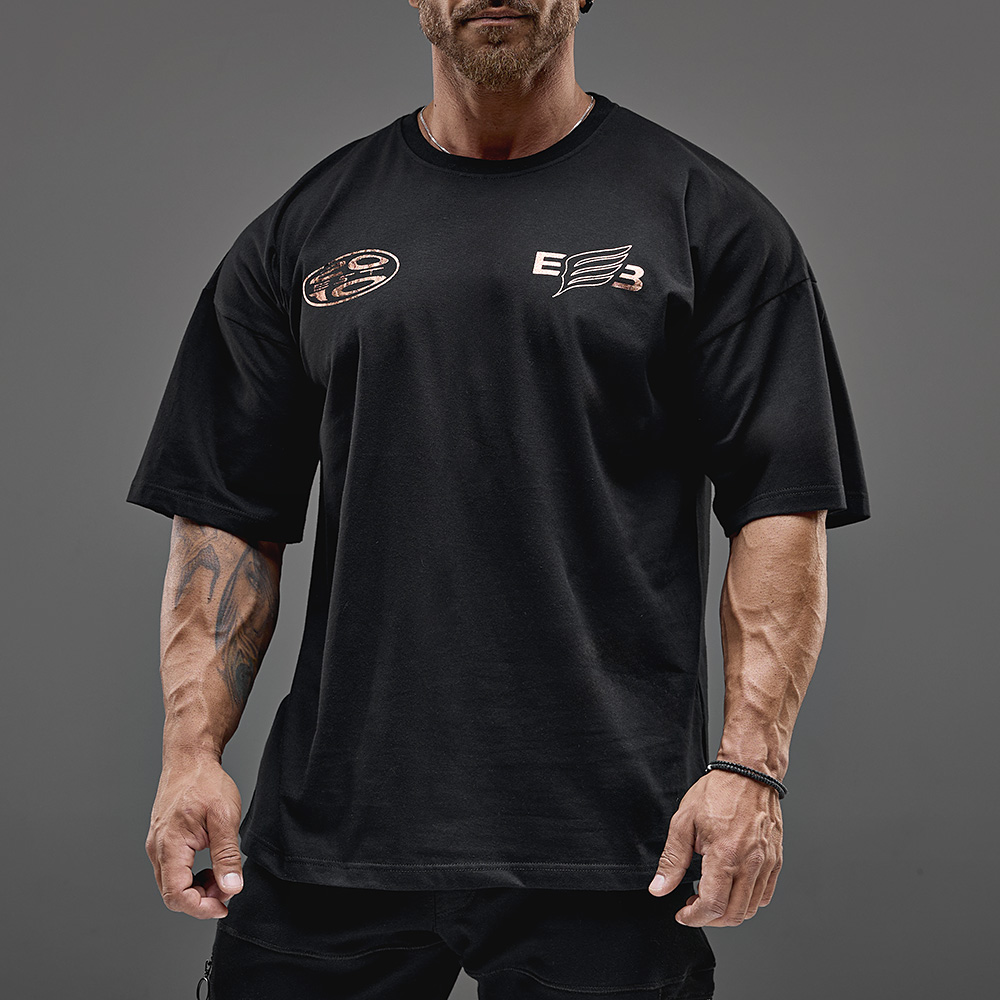 Κοντομάνικη μπλούζα σε φαρδιά γραμμή με μπροστινό μπρον΄ζέ τύπωμα για ανεβασμένους ρυθμούς στην προπόνηση και το γυμναστήριο. Ιδιαίτερα άνετο ρούχο για φυσική ελευθερία κινήσεων.
