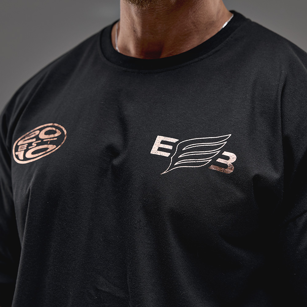 - Μπρονζέ τύπωμα στο μπροστινό μέρος της μπλούζας